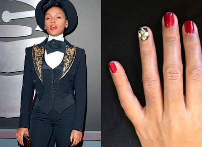 Pelo visto as unhas estilo filha única foram as queridinhas das famosas, até Carly Rae Jepsen escolheu a Nail Art. E ainda no memso estilo só que tendo a cor vermalha também como ponto comum Carrie Underwood e Janelle Monae investiram no modelo, que aliás ficaram perfeitos em todas!HEHE!